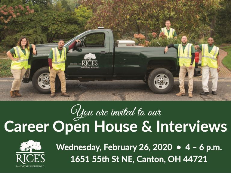 Attend the upcoming Rice's Landscaping career fair, Wednesday, February 26, from 4 to 6 p.m. at Rice's Landscaping in Canton, Ohio.