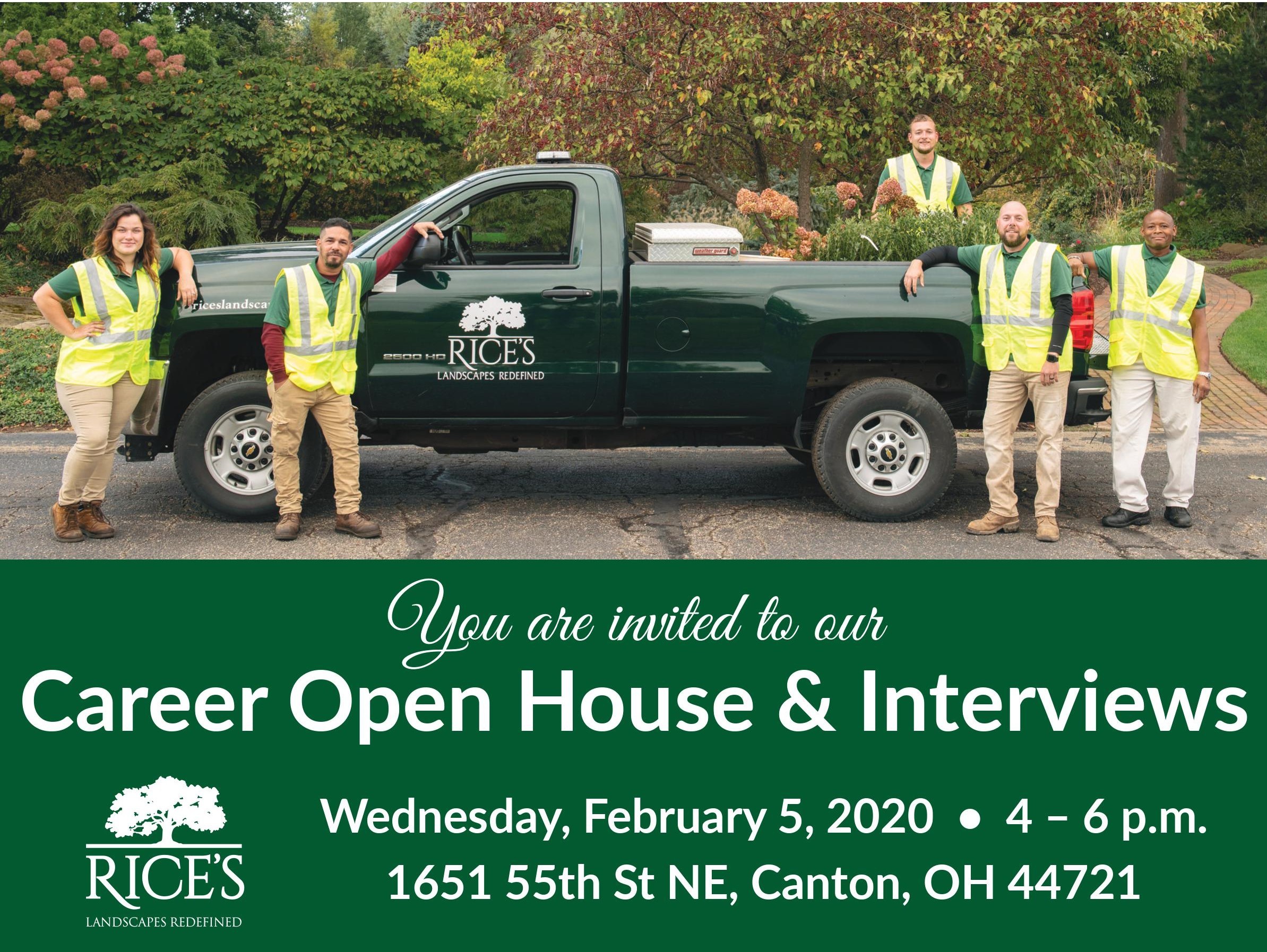 Attend the upcoming Rice's Landscaping career fair, Wednesday, February 5, from 4 to 6 p.m. at Rice's Landscaping in Canton, Ohio.